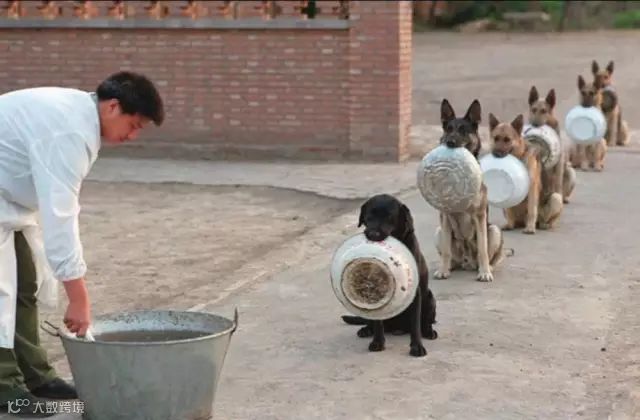 中国的警犬排队打饭