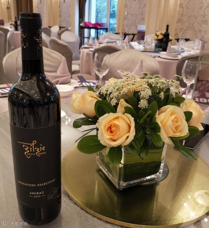 倒入杯中,果香酒香年鼻;品尝时酒中单宁微带涩味,促进食欲。
