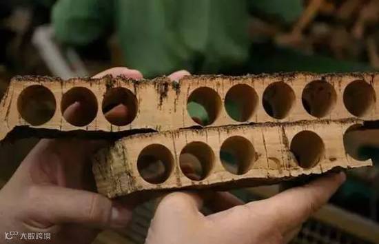 当然,软木冲压完后,剩余的木材(如下图)也不能浪费。一般会碾碎成颗粒状,用来制作复合塞(Agglomerate Corks)。
