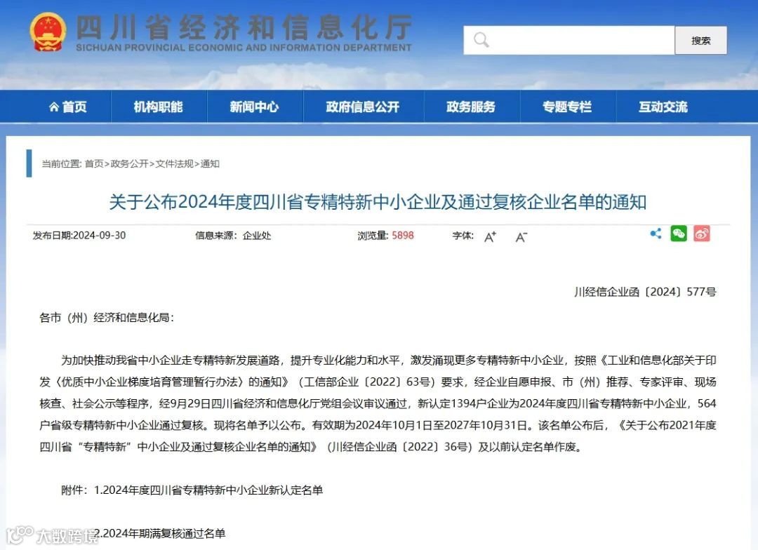 2024年度四川省专精特新中小企业