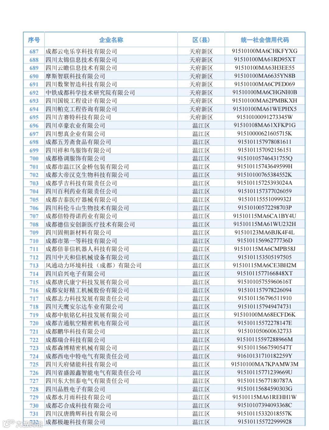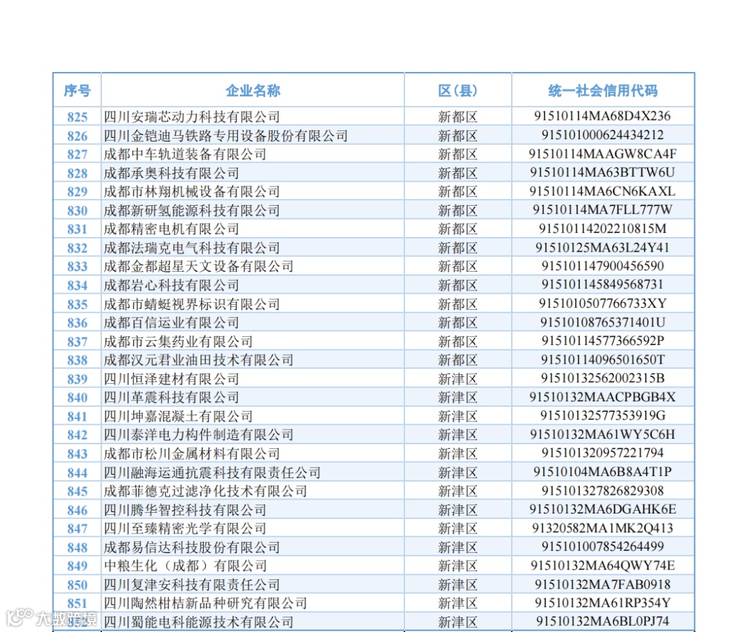名单显示,成都府天高温材料科技有限公司、成都航天华涛汽车塑料饰件有限公司、通威农业发展有限公司等852家成都企业被新认定为2024年度四川省专精特新中小企业,四川省贝特石油技术有限公司、成都晨航磁业有限公司、成都摩尔环宇测试技术有限公司等228家企业今年期满复核通过。