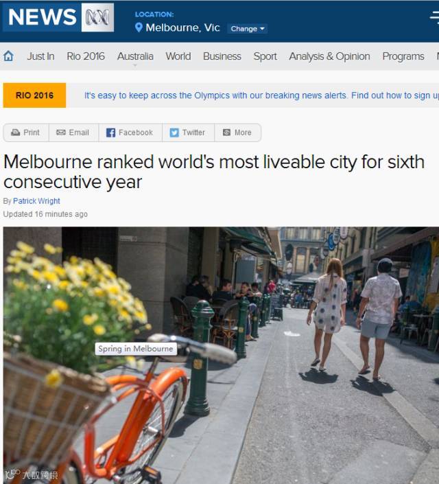 在今年全球最宜居城市排行榜中,2016年墨尔本再次荣获最宜居城市!