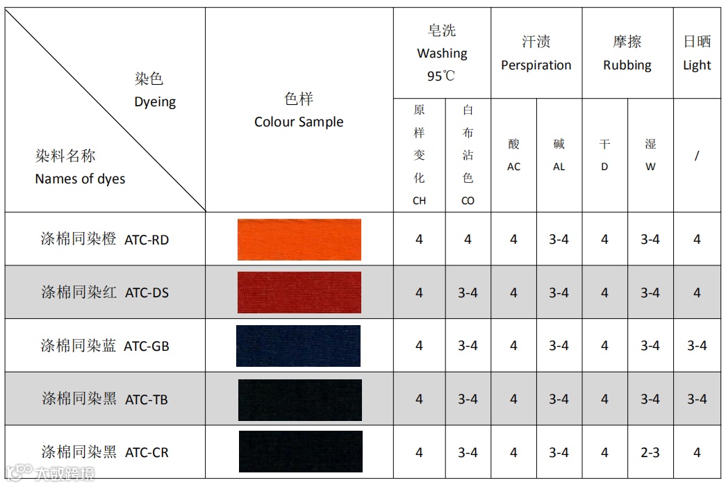 从以上对比可以的看出,ATC系列染料在生产加工中有巨大的优势。