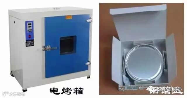 2.1、将清洁的铝箔盘放入100℃的烤箱内恒温烘烤1小时;