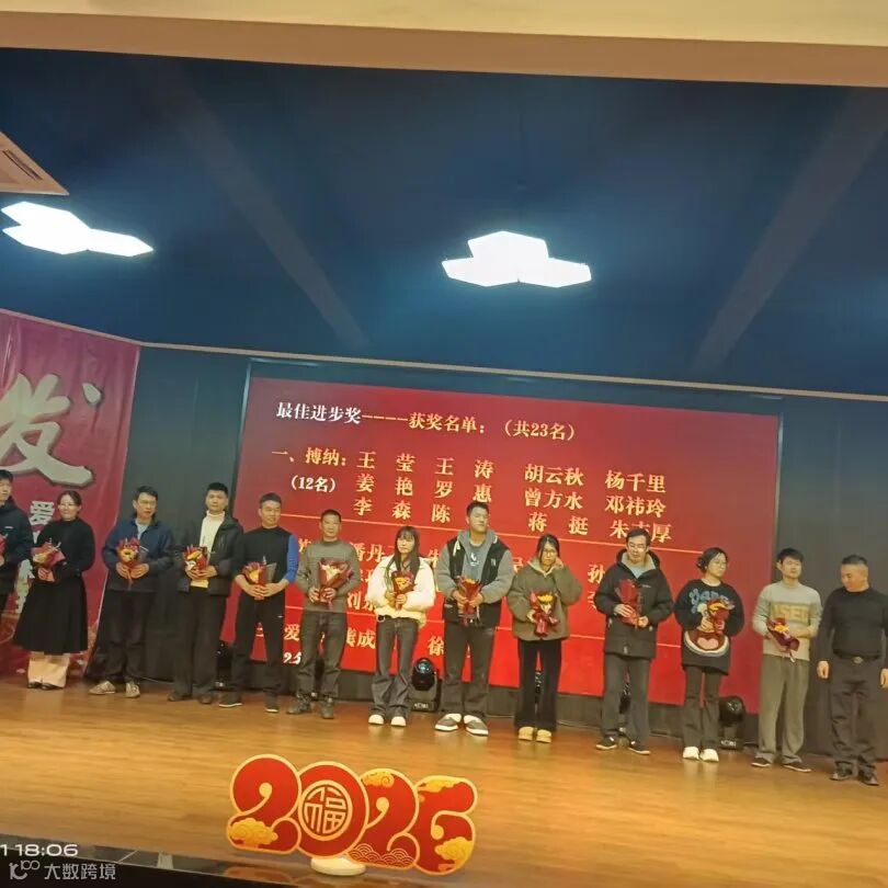 表彰环节是本次年会的高光时刻,见证荣耀,致敬榜样。公司领导分别对最佳业绩奖、优秀员工、进步员工及“新星闪耀”获得者进行集中表彰,致敬每一位奋斗者,激励全体同仁争先创优、共促成长。获奖者们在掌声中登台,每一份荣誉都凝聚着汗水与担当,既是对过往成绩的肯定,更是对全体员工的激励,让奋斗者的光芒照亮全场。