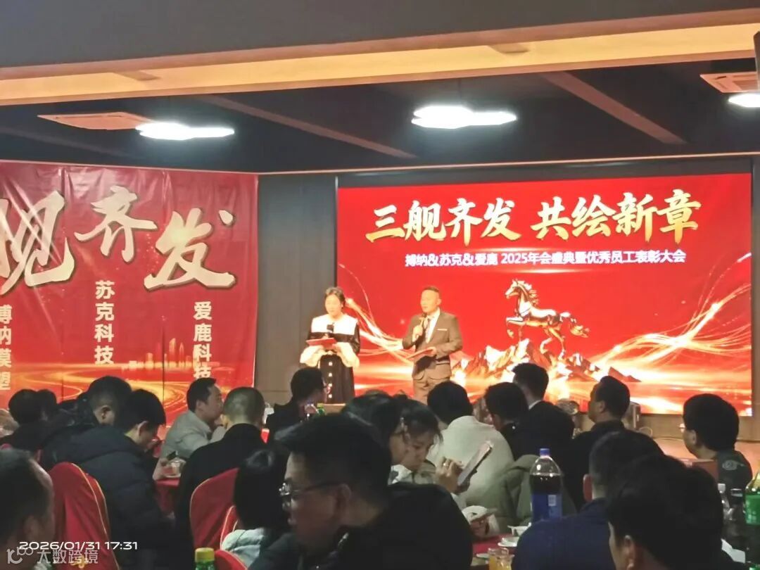 岁序流转,华章迭新。1月31日,台州苏克科技、搏纳模塑、爱鹿科技,“三舰齐发、共绘新章”主题年会盛典温情启幕,全体同仁欢聚一堂,回溯奋斗征程的铿锵足迹,共启未来崭新篇章,用一场盛会致敬每一份耕耘与坚守。