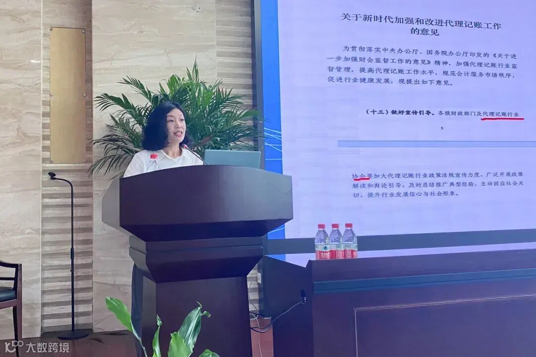 乐清市代理记账协会会长杨建玉强调了代账行业健康发展的重要性,指出规范管理对行业有序发展的关键作用。她分享了协会近年发展方向,作为政府与企业间的桥梁,协会致力于推动行业自律和规范化管理,通过制定规范、加强培训、促进信息共享等举措,提升会员服务质量与专业水平,鼓励互相监督学习,形成良好行业氛围。同时,她呼吁更多代账机构加入协会,共谋行业发展。