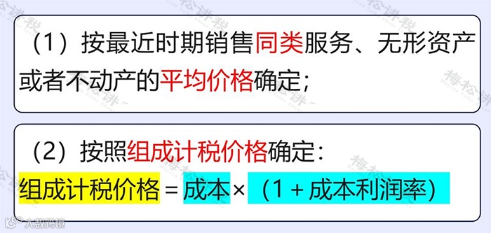 (三)按照组成计税价格确定。组成计税价格的公式为:组成计税价格=成本×(1+成本利润率),成本利润率由国家税务总局确定
