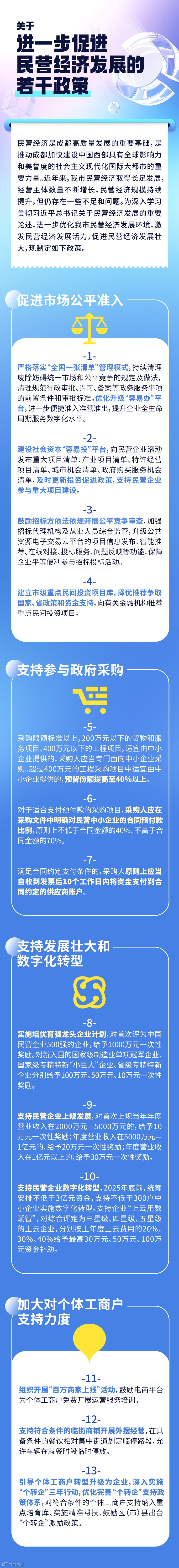 民营经济是成都高质量发展的重要基础,是推动成都加快建设中国西部具有全球影响力和美誉度的社会主义现代化国际大都市的重要力量。近年来,我市民营经济取得长足发展,经营主体数量不断增长,民营经济规模持续提升,但仍存在一些不足和问题。为深入学习贯彻习近平总书记关于民营经济发展的重要论述,优化我市民营经济发展环境,激发民营经济发展活力,进一步促进民营经济发展,现制定如下政策。