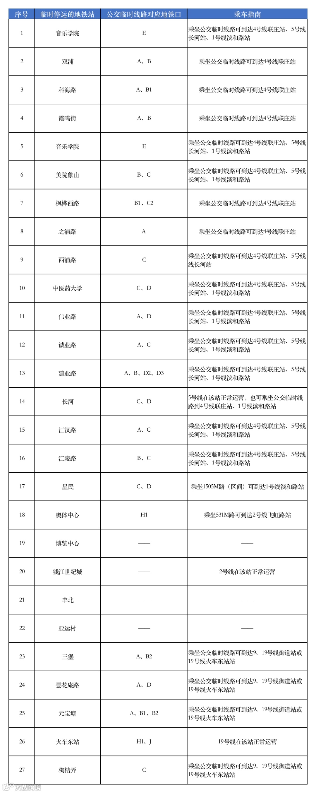 针对临时停运的地铁站