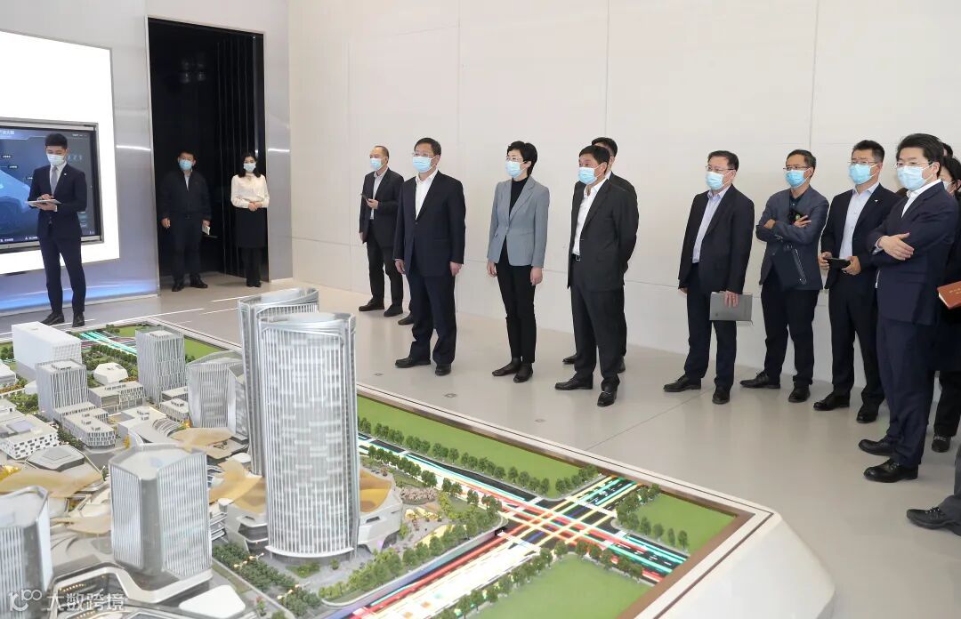 ↑施小琳等市领导在上海金桥金鼎天地项目考察学习