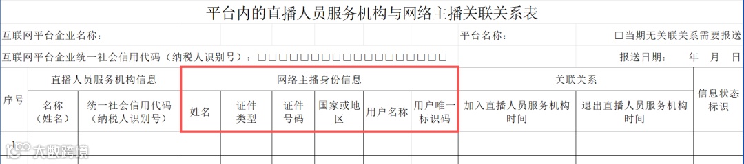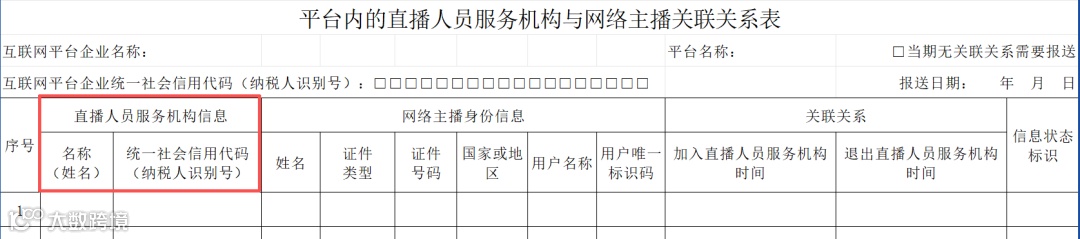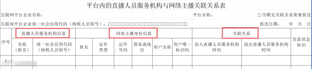 除表头基本信息外,《平台内直播人员服务机构与网络主播关联关系表》的表内信息主要填报直播人员服务机构信息、网络主播身份信息和关联关系三部分内容。