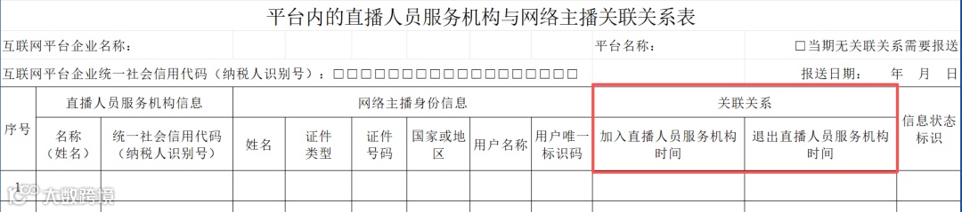 关联关系部分,主要填写主播加入和退出服务机构的时间。