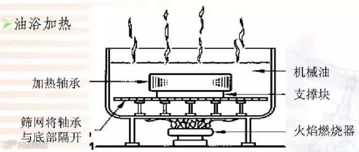 不允许轴承接触油槽底部,另外热套安装还可以利用感应加热装置将轴承加热使其膨胀后再安装在轴上。