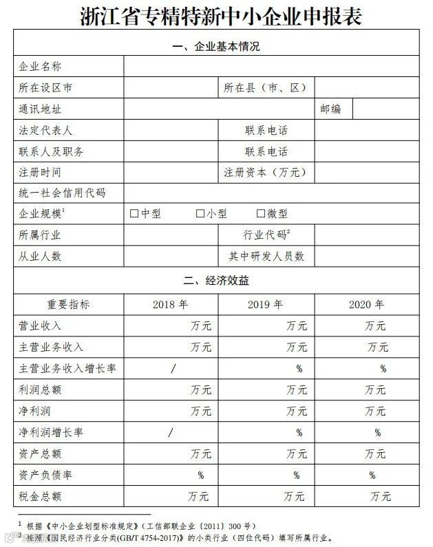 附件2:浙江省专精特新中小企业申报表