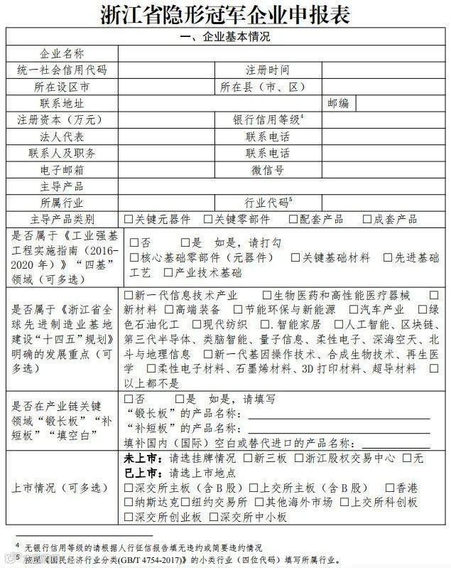 附件3:浙江省隐形冠军企业申报表