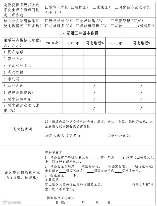 1.企业申报。申报浙江省专精特新中小企业,请于10月28日—11月15日登录企业码平台(https://qymgw.jxt.zj.gov.cn)在线填报《浙江省专精特新中小企业申报表》(见附件2)。同时需在11月18日前向区经信局提供纸质申报材料(申报表和佐证材料)一式三份。申报浙江省隐形冠军企业,请于10月28日—11月15日登录企业码平台(https://qymgw.jxt.zj.gov.cn)在线填报《浙江省隐形冠军企业申报表》(见附件3),并上传相关佐证材料,申报资料明细详见附件5。同时需在11月16日前向区经信局提供纸质申报材料(申报表和佐证材料)一式三份。