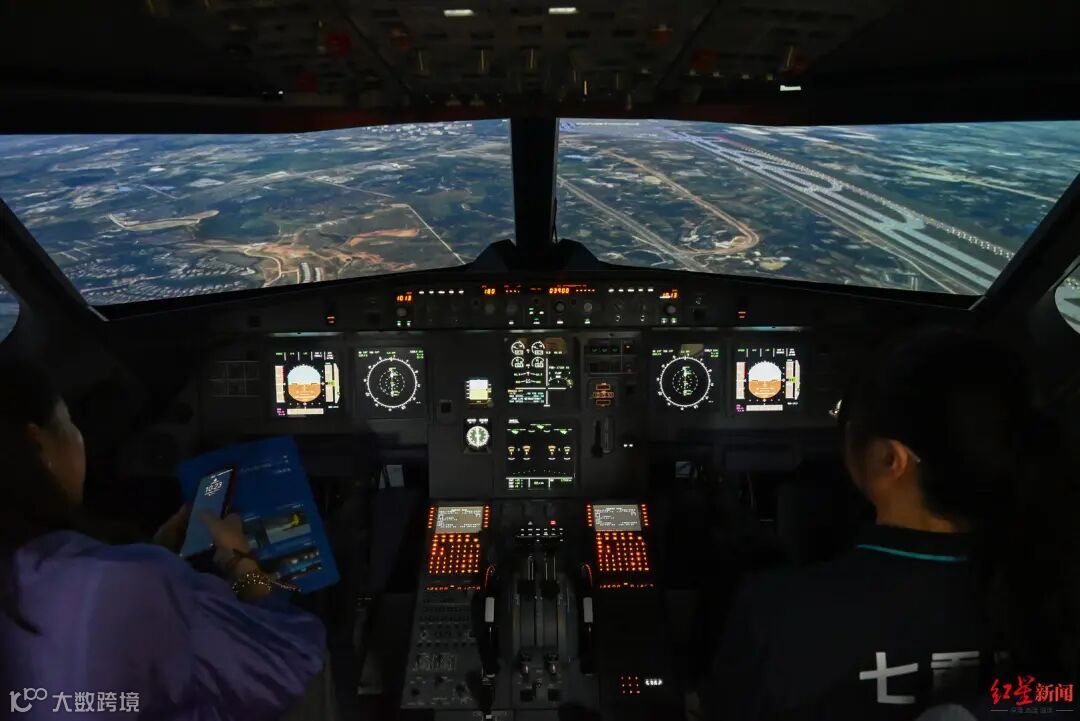 例如,展馆里的飞机模拟器配备了高清晰度、高精度的仿真交互设备,蓝天、机场、跑道等元素在屏幕上构成了十分真实的飞行场景。“在这里,观众可以通过视觉、听觉、平衡和触摸感官真实体验民航大飞机的操控和飞行,也能够让航空培训中的学员更高效地学习和掌握飞行技巧。”相关工作人员告诉记者。