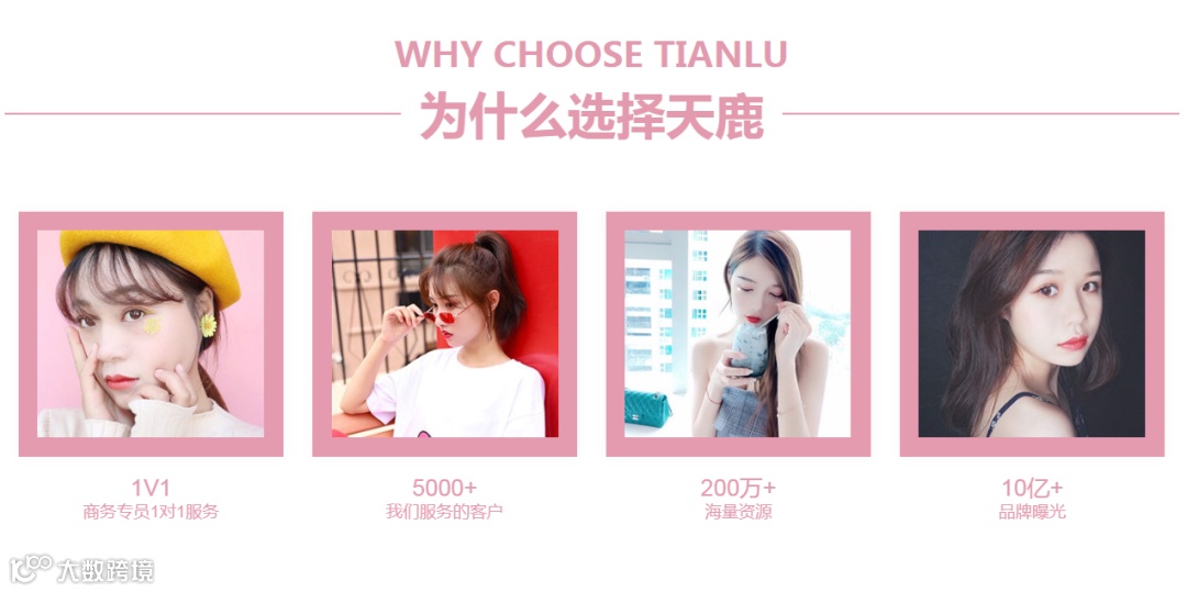 天鹿帮助品牌打造在各个新媒体渠道的内容矩阵,服务过1000+优质品牌企业,积累了成功的营销经验和优质红人资源。公司具备一流影视明星和头部KOL资源,为国内外美妆、母婴、淘宝前十销售额红人店铺等服务打造过IP,在抖音和小红书等主流平台进行推广。