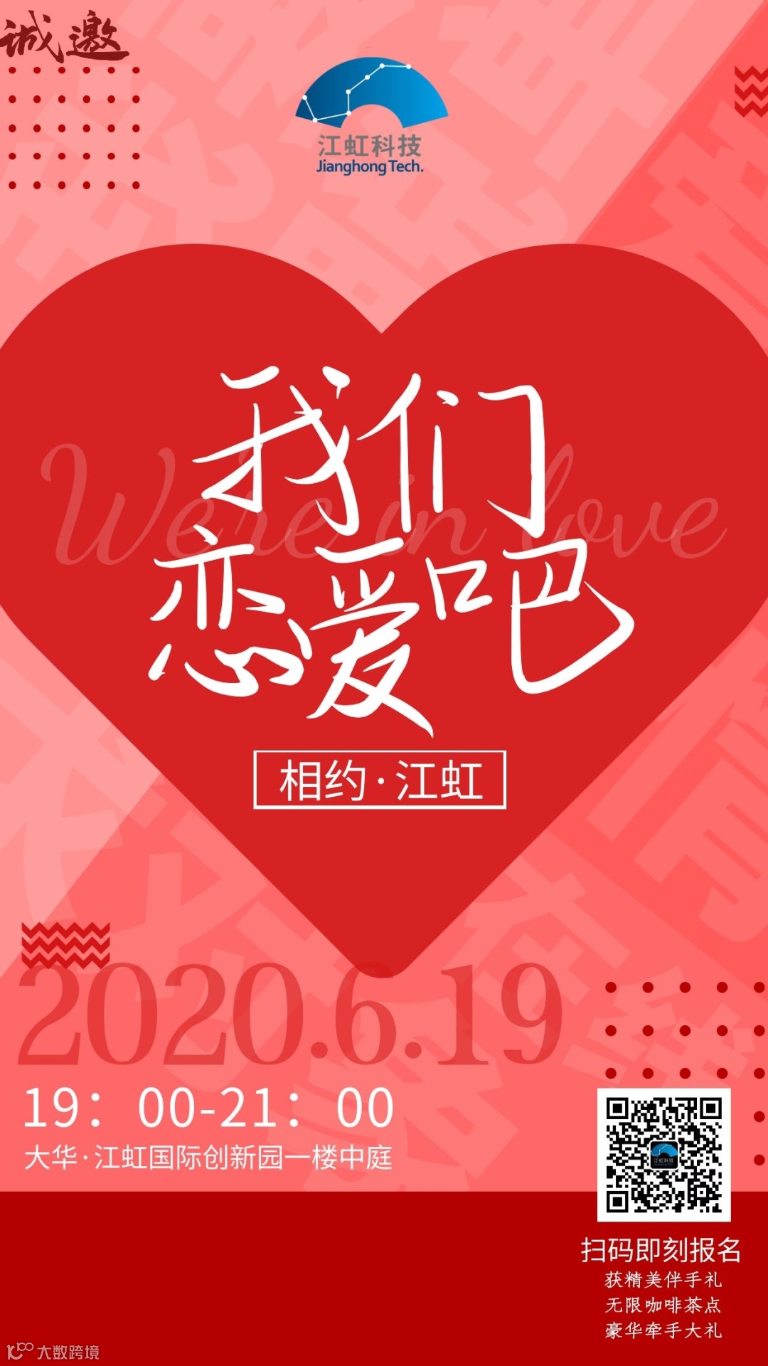 俗话说:夫妻同心,其利断金!为响应园区小伙伴需求,让大家爱情事业双丰收。江小虹将于6月19日举办“创业手牵手·相约江虹联谊活动””,现场看创业者们甜蜜互动,寻觅到中意的另一半。