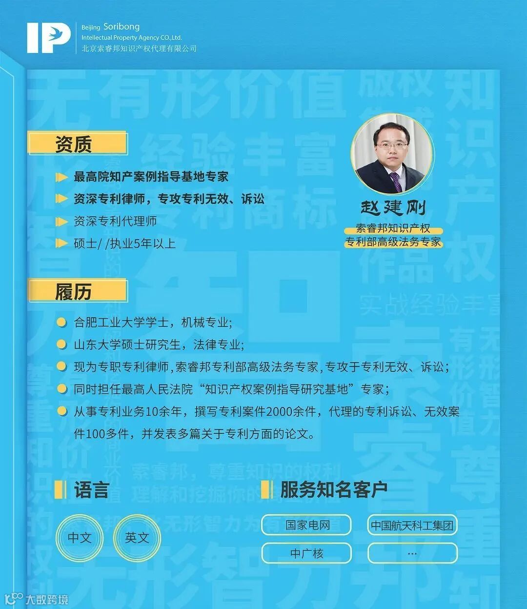 本期的主讲嘉宾是索睿邦专利部高级法务专家赵建刚律师。他将和我们一起探讨专利维权方面的话题。