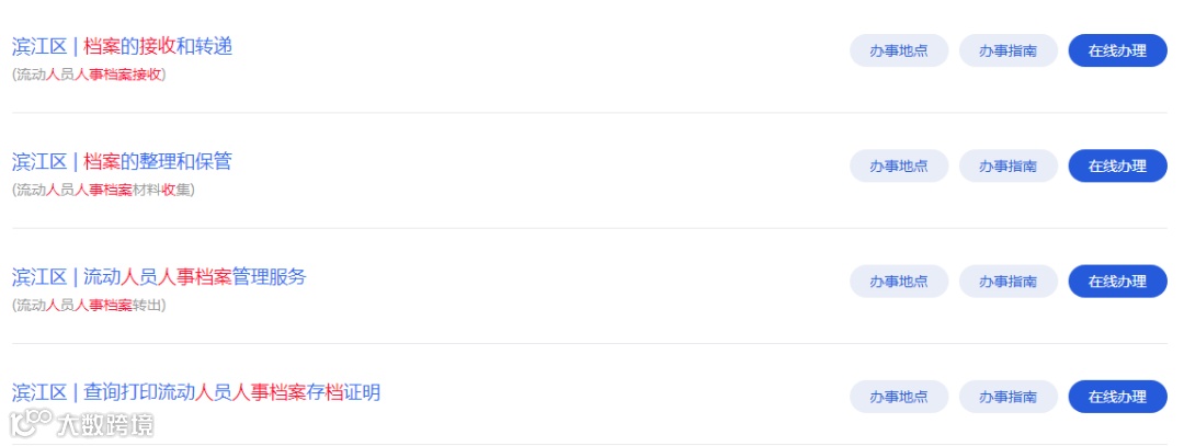 tips:人事档案业务办理请根据存放的户口所在地或工作单位所在地选择办事地点