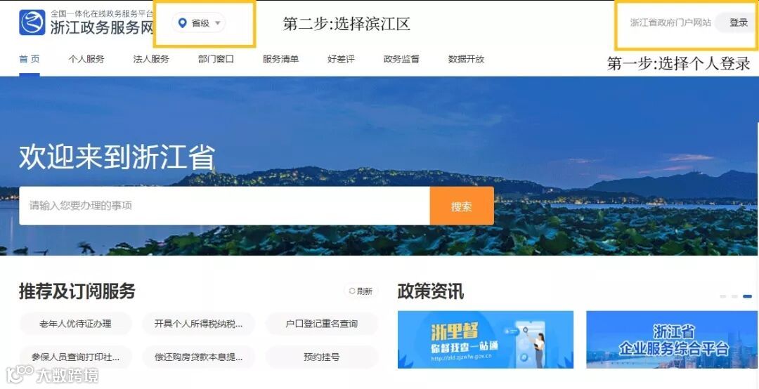 由于浙江政务服务网改版