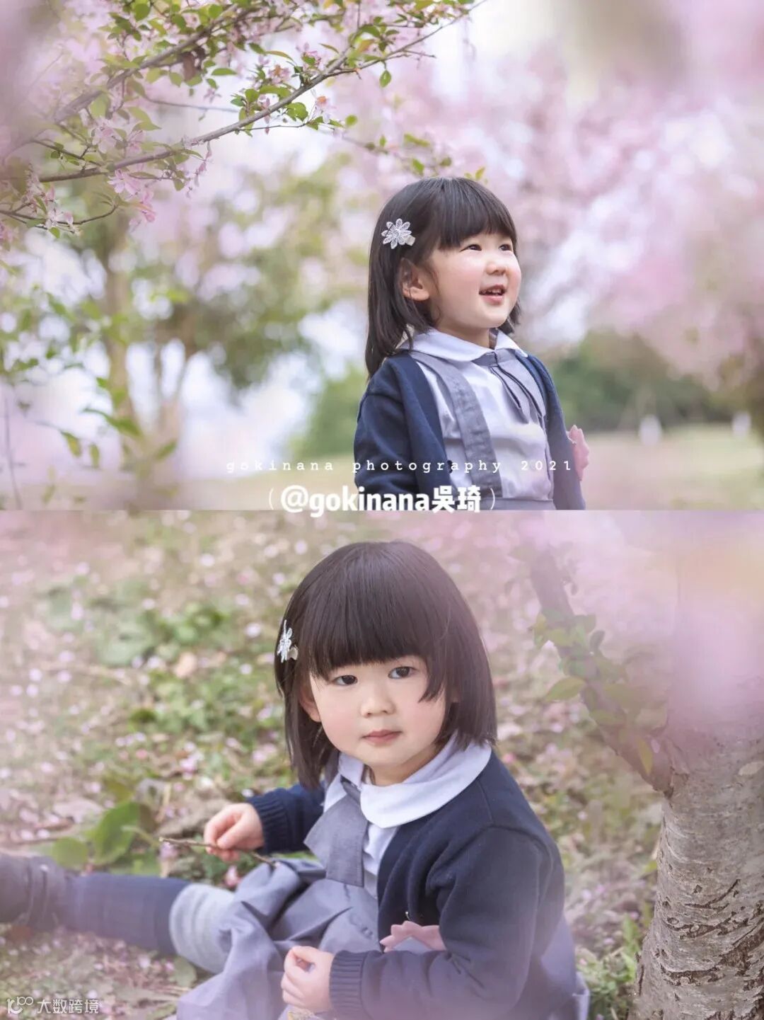 这座由粉白相间的春樱点缀的、