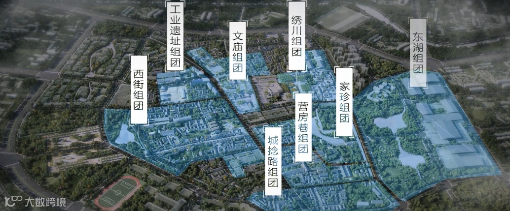 整个城厢分为“文、旅、商、城”4大功能区,城廓内6大功能组团“风情绣川、1956文创园、千年西街、厢逢九思、蓉欧客厅、雁归东湖”相映成趣。每个组团既有独立特性,又能互为补充依托,形成了一镇读千年的格局。