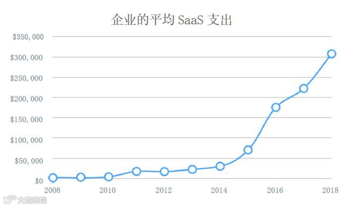 企业在SaaS上的平均支出大约为34.3万美元,同比增长了78%,表明SaaS仍在爆炸性增长期。
