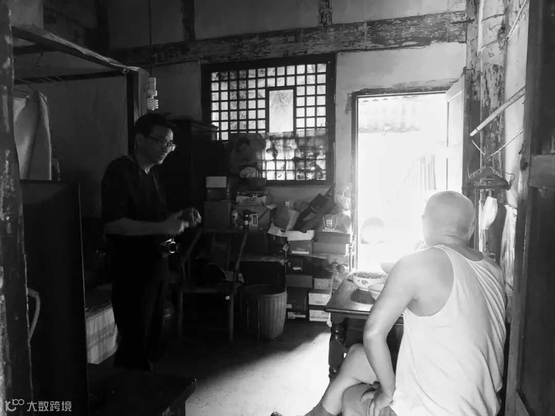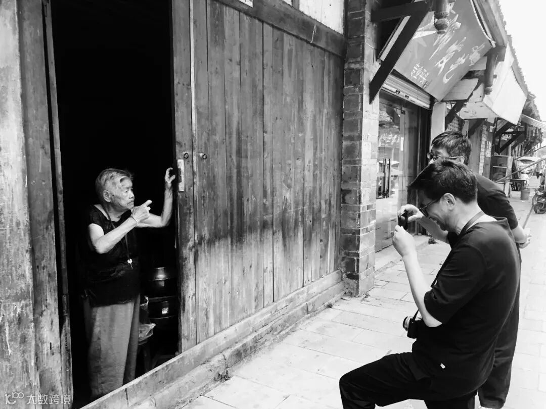▲ 钱小华为在城厢古镇西街居住的婆婆拍照,婆婆比着手势说自己已经九十岁了。