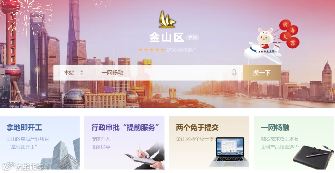 ▲金山区“一网通办”平台企业服务线上专窗