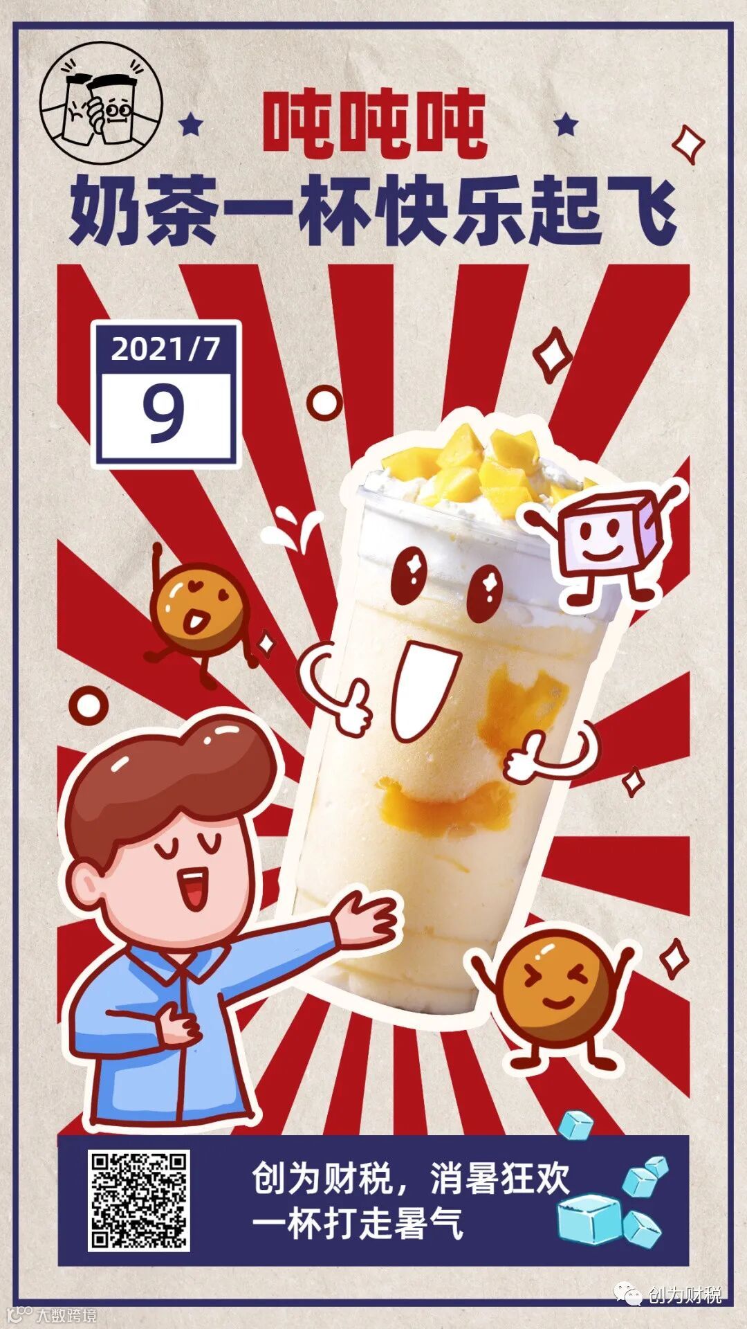 在7月9日当天送上冰奶茶一杯