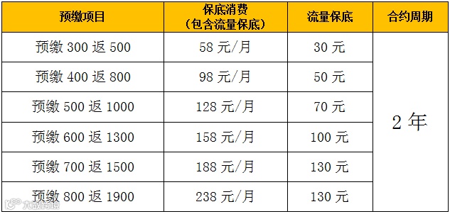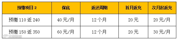 备注:目标用户话费可一次性到账,否则分24个月返充。