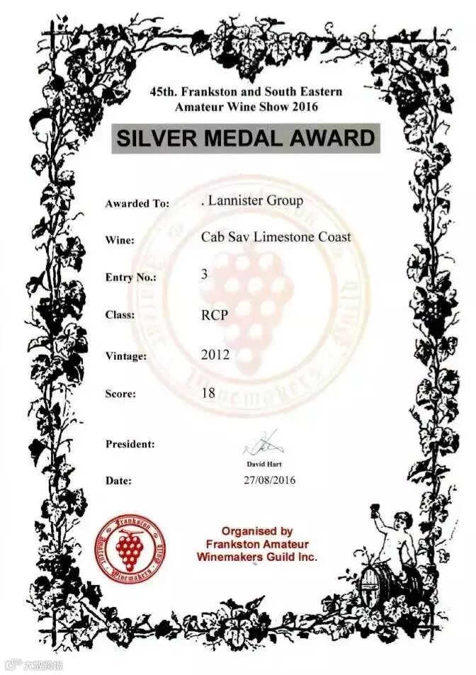 2012年兰尼斯特石灰岩海岸老藤赤霞珠就是这片土地的佳作之一。它将赤霞珠品种香气,石灰岩海岸的风土特色以及酿酒人的葡萄酒文化理念完美糅合。除了在凯恩斯葡萄酒展会上风光无限,近日该款酒也在第45届弗兰斯顿暨东南澳红酒爱好者大赛上以18分高分夺得银奖。