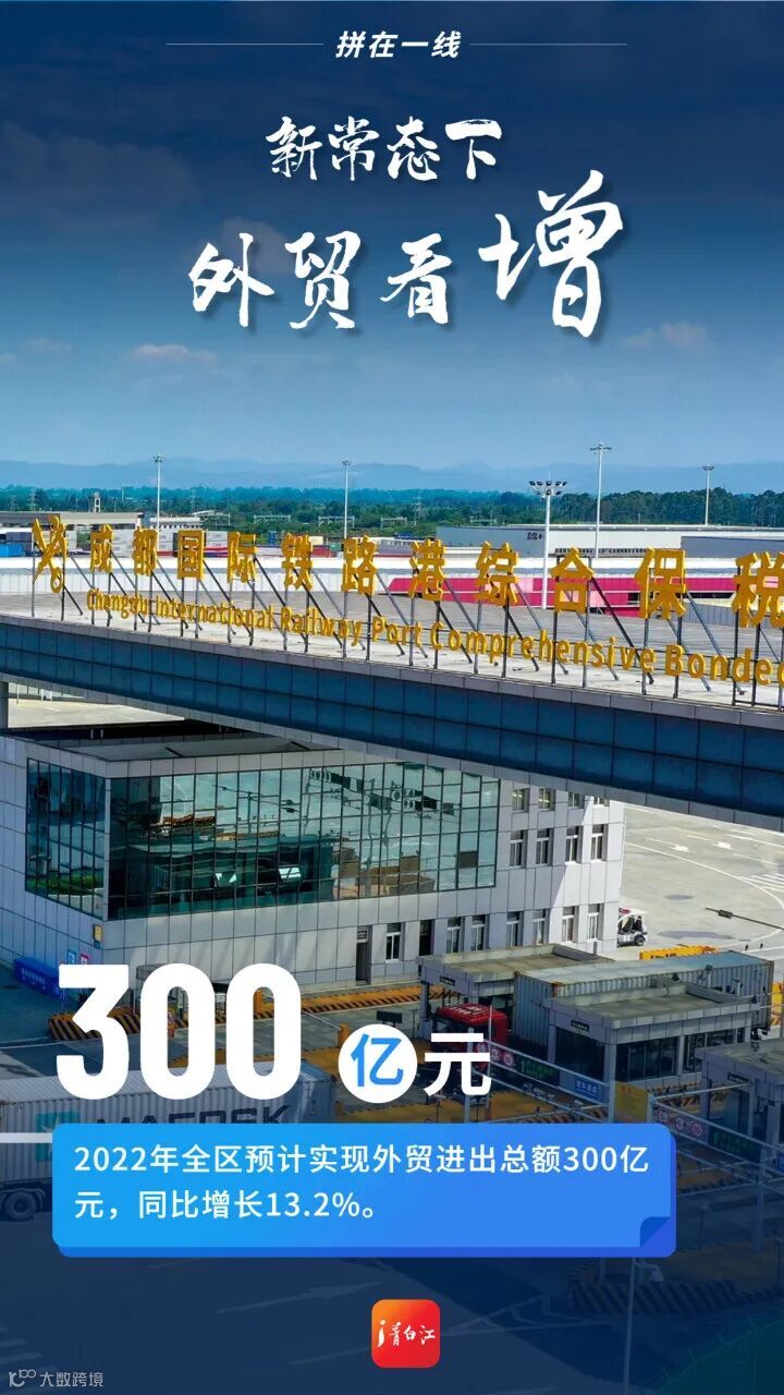 作为成都中欧班列的始发地,和全国唯一依托铁路港设立的自贸片区,2022年青白江持续提升枢纽集聚辐射能力,全力保障外贸稳定发展。日前,记者从区国贸和物流局获悉,2022年全区预计实现外贸进出总额300亿元,同比增长13.2%。