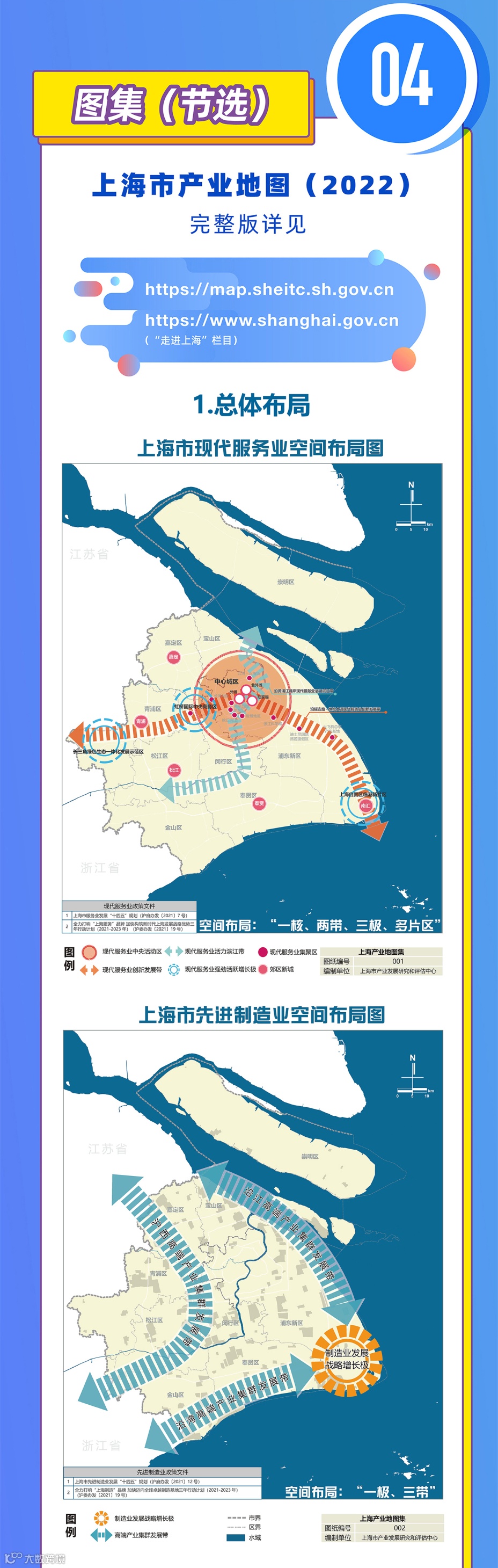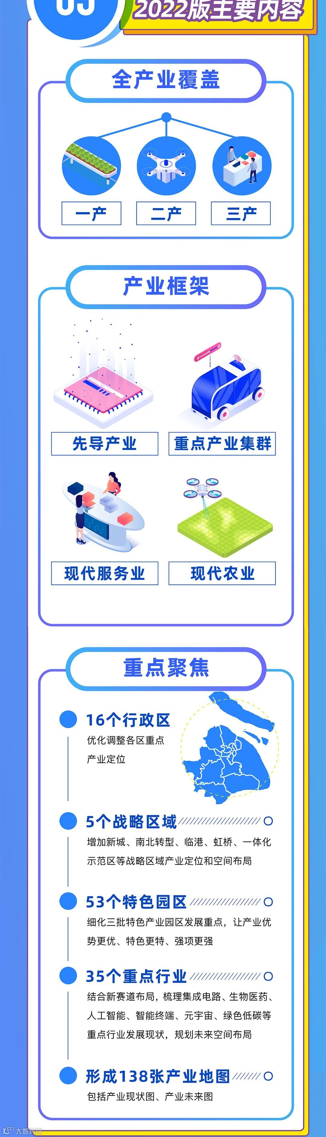 近日,市政府印发《上海市产业地图(2022)》,为全市产业经济发展提供新指引。产业地图覆盖一二三产业,聚焦16个区、5个战略区域、53个特色园区、35个重点行业,包括138张产业现状图和产业未来图,将打造成为宣传上海产业特色、讲好上海产业故事的平台和窗口,吸引更多市场主体了解上海产业、推动上海发展。详见↓