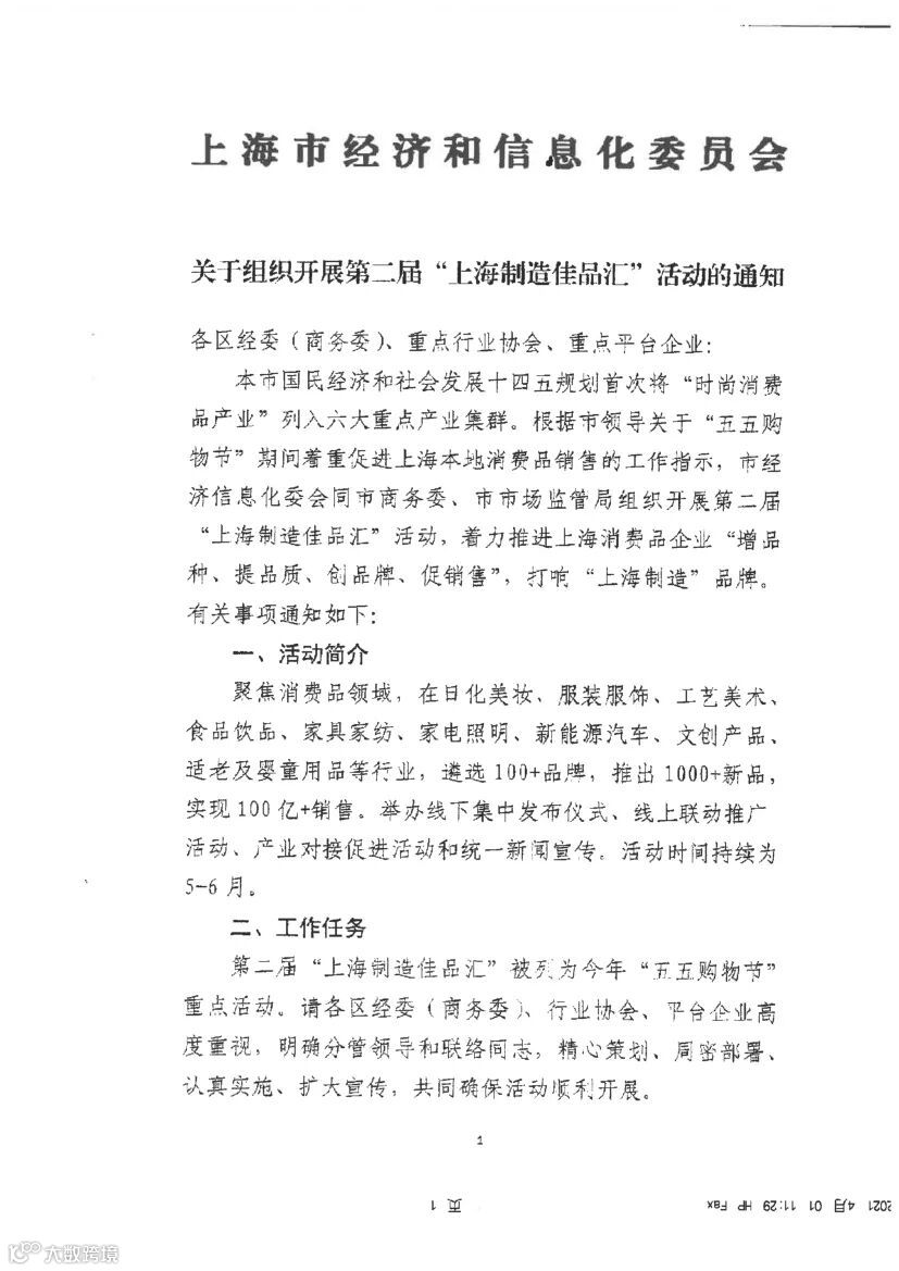 1. 关于组织开展第二届“上海制造佳品汇”活动的通知