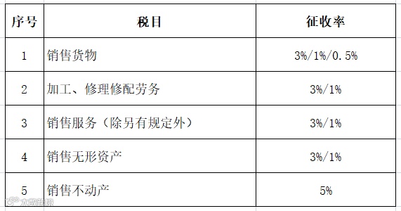2020最新增值税征收率表