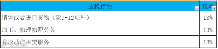 所以,我们可以这样来记忆,但凡货物相关的一些行为,除特殊货物或者特殊货物的特殊行为外,都使用13%的税率。