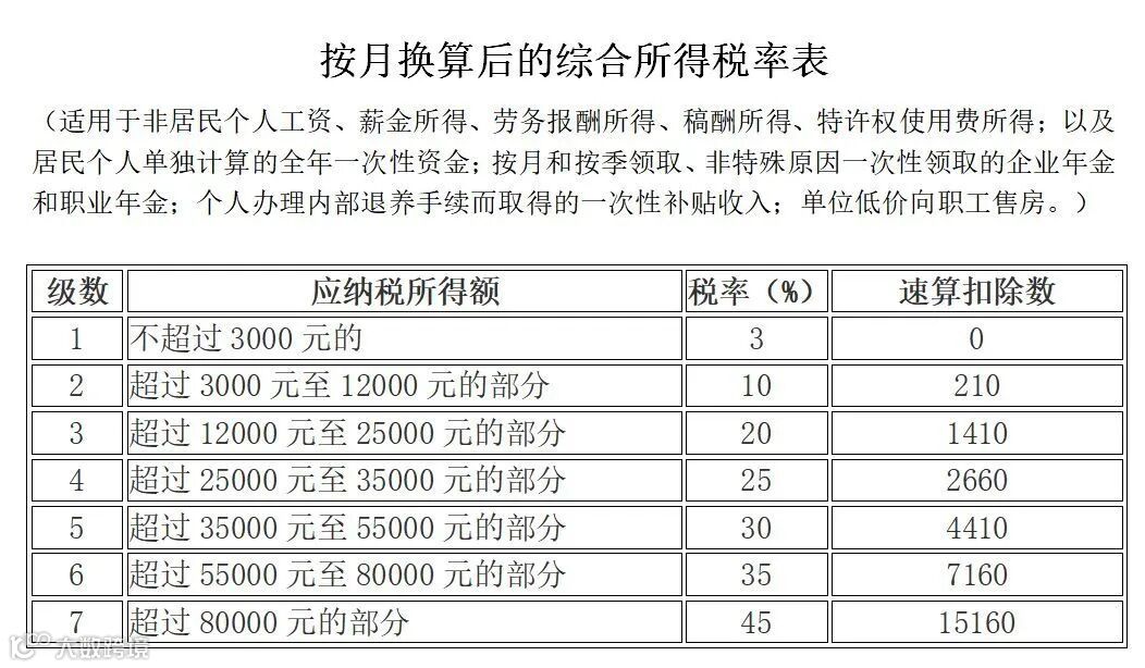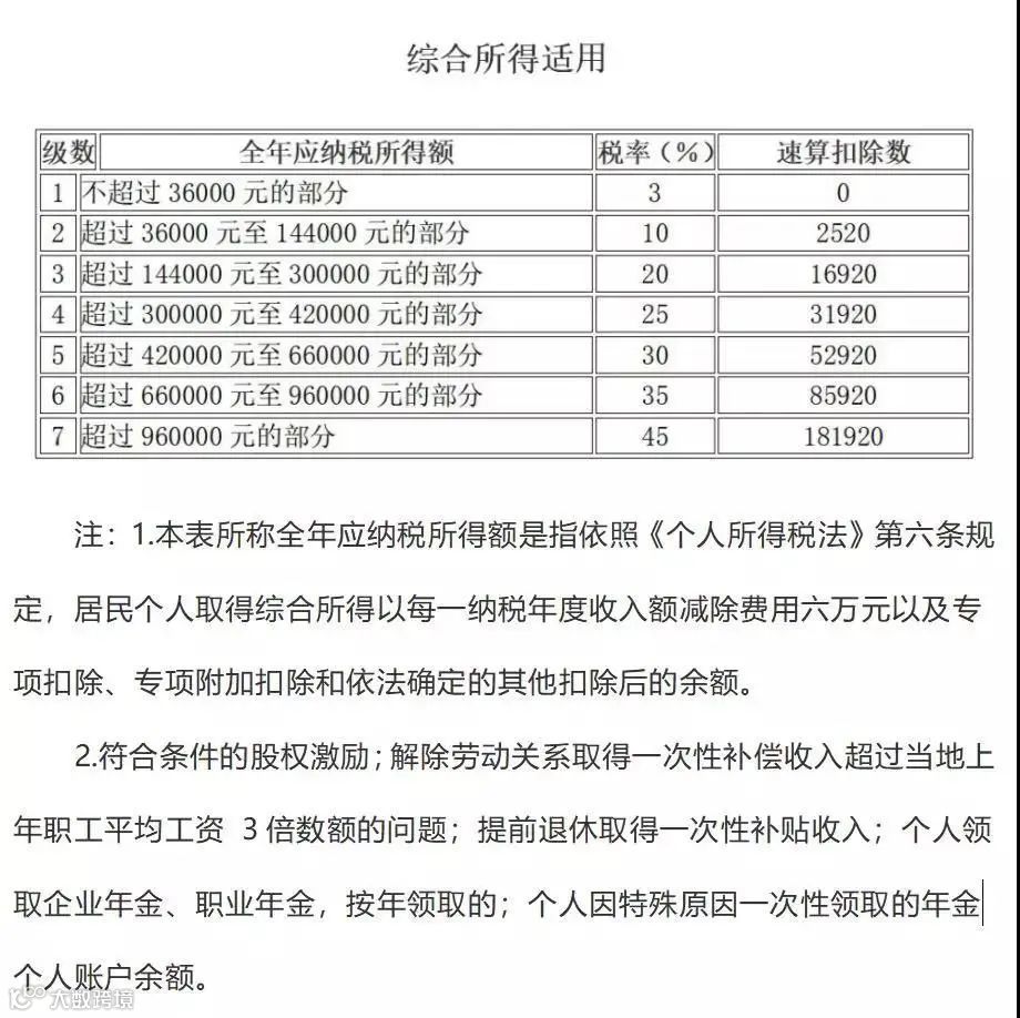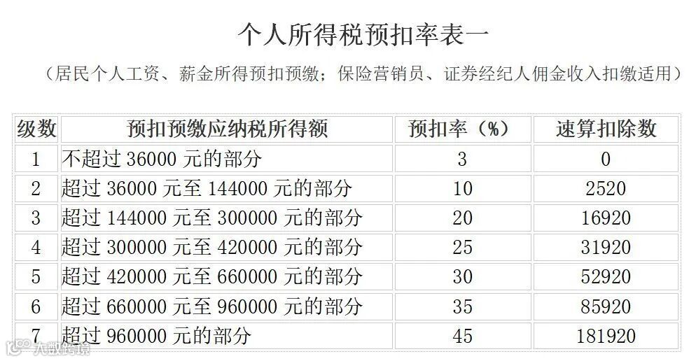 2020 最新个人所得税税率表