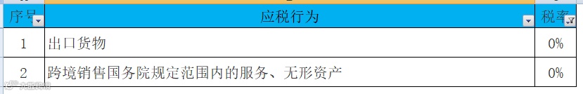 1.涉及货物的这种特殊行为,那就是出口,税率0%。