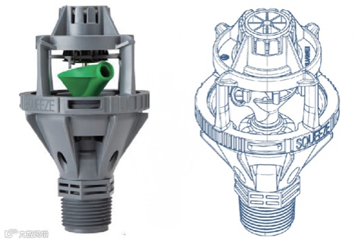 该产品替代了中等射程摇臂喷头的旋转喷头,比铜或其他金属摇臂喷头更节省成本;相对同类喷头,该产品具有更低的气动压力,较远的射程、较低喷灌强度,可靠性更强、抗风性优;阻尼结构解决了摇臂喷头旋转时立杆晃动造成的水滴问题,旋转平稳。该产品主要应用于果树、苗木、蔬菜、花卉等经济作物、大田作物及园林草地等灌溉,对地形的适用性也很强,且具有很强的加湿、降温、除霜、防冻、防干热风等环境调控作用。