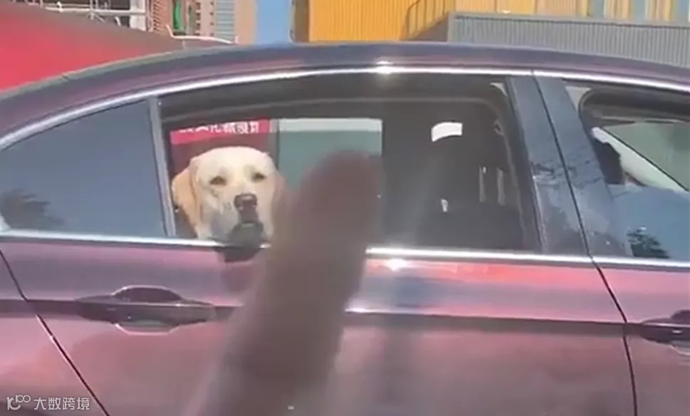 等待红绿灯时,小伙看到对面车里的狗狗恰好朝自己看了过来。