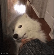 看来狗子真的是很嫌弃了,恨不得逃得远远的~