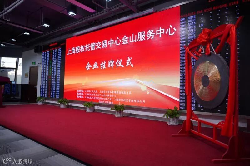 中共金山区委常委、副区长张权权与企业代表共同进行挂牌敲锣仪式。为庆祝挂牌成功,“上海股权托管交易中心金山服务中心”与“江浪”“戎腾”互赠纪念品以表示庆祝。