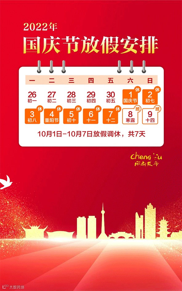 2022年国庆节放假安排通知