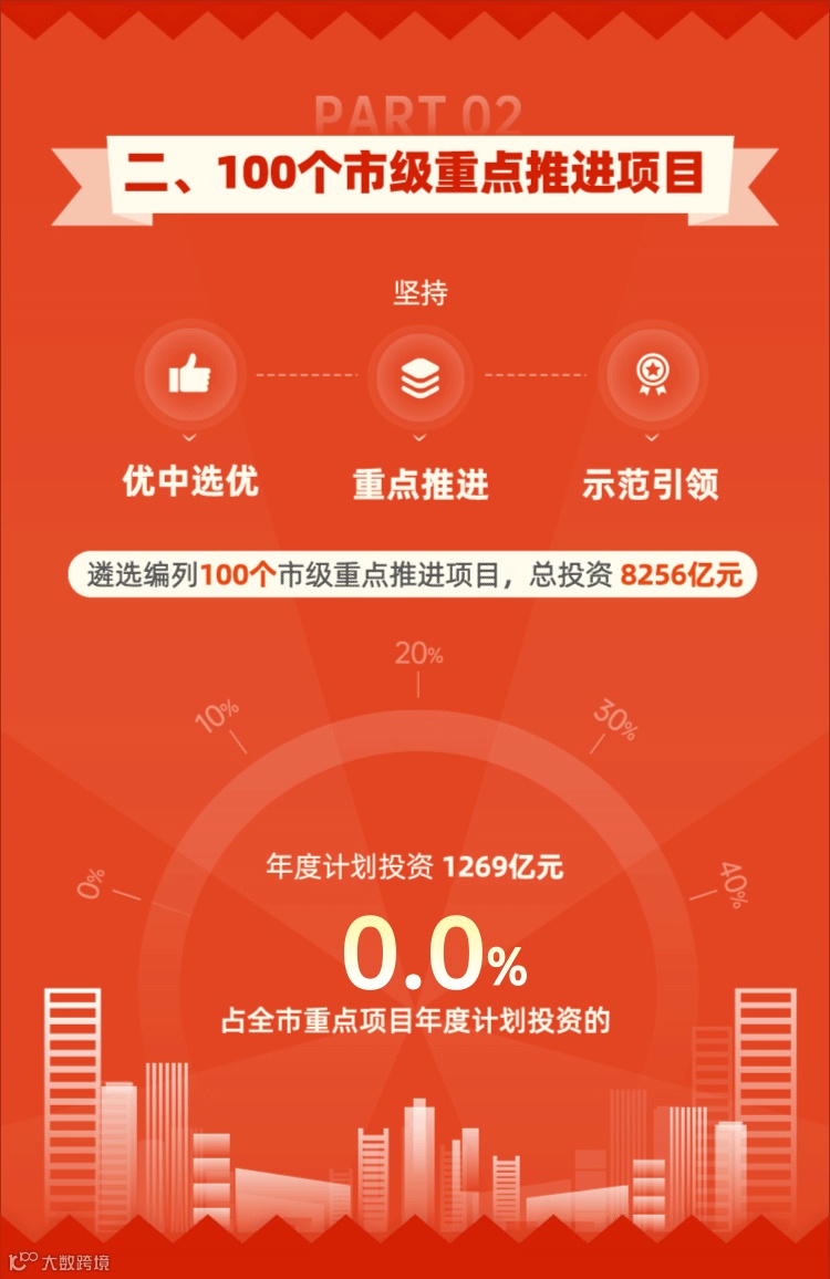 此外,900个重点项目中,坚持“优中选优、重点推进、示范引领”,围绕市委市政府中心工作和重点任务,继续遴选编列100个市级重点推进项目,由市领导牵头,以更大力度、更实举措包干推进,示范引领全市重大项目建设。