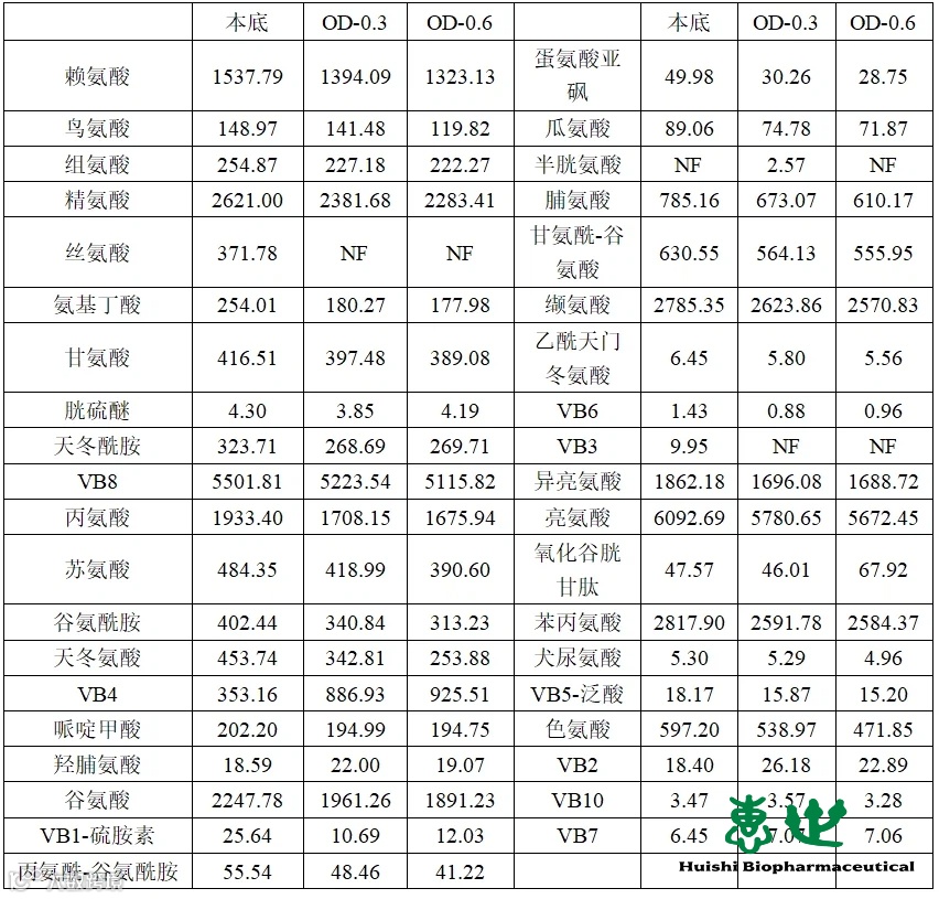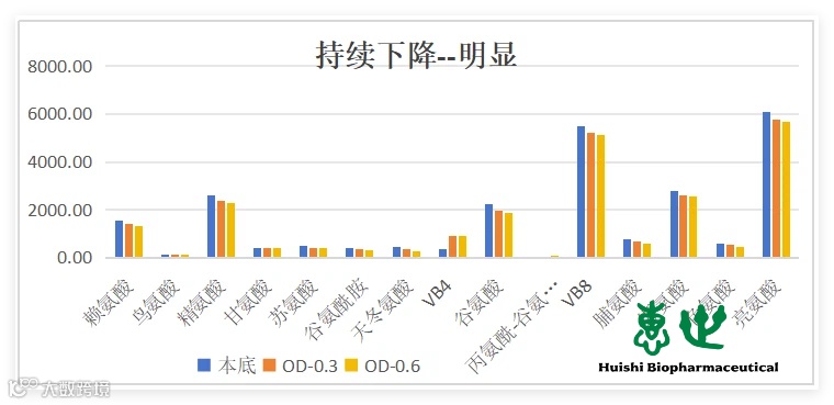赖氨酸、精氨酸、VB8等15种氨基酸及维生素在发酵过程中持续下降
