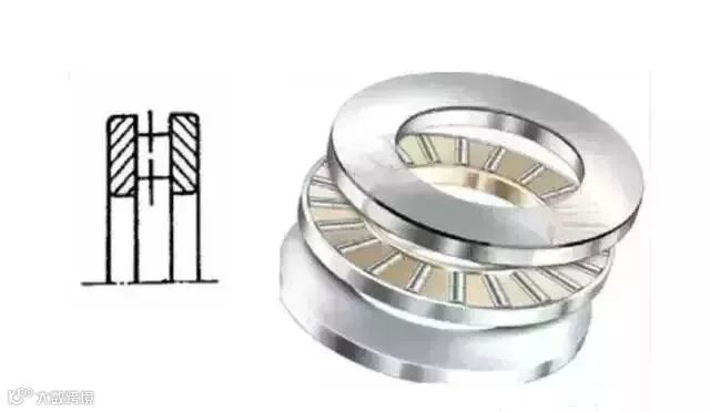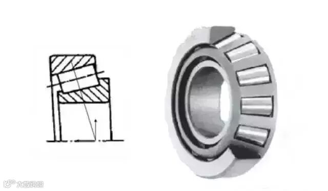 该类轴承装有圆台形滚子(大端为球面),滚子由滚道圈(轴圈、座圈)挡边准确引导,设计上使得轴圈和座圈滚道面以及滚子滚动面的各圆锥面的顶点相交于轴承中心线上的一点,单向轴承可承受单向轴向负荷,双向轴承可承受双向轴向负荷。